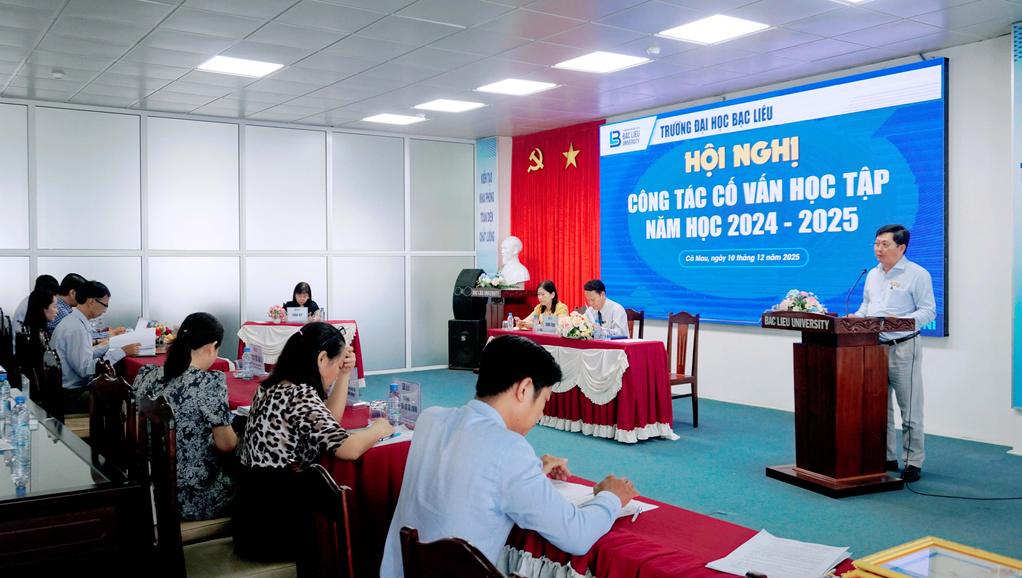 Ngày 10/12/2025, Trường Đại học Bạc Liêu tổ chức Hội nghị Tổng kết công tác Cố vấn học tập (CVHT) năm học 2024 – 2025. Tham dự hội nghị có PGS.TS Tiền Hải Lý - Phó Bí thư Đảng uỷ, Phó Hiệu trưởng; Quý thầy, cô đại diện lãnh đạo các Khoa, Phòng và cố vấn học tập