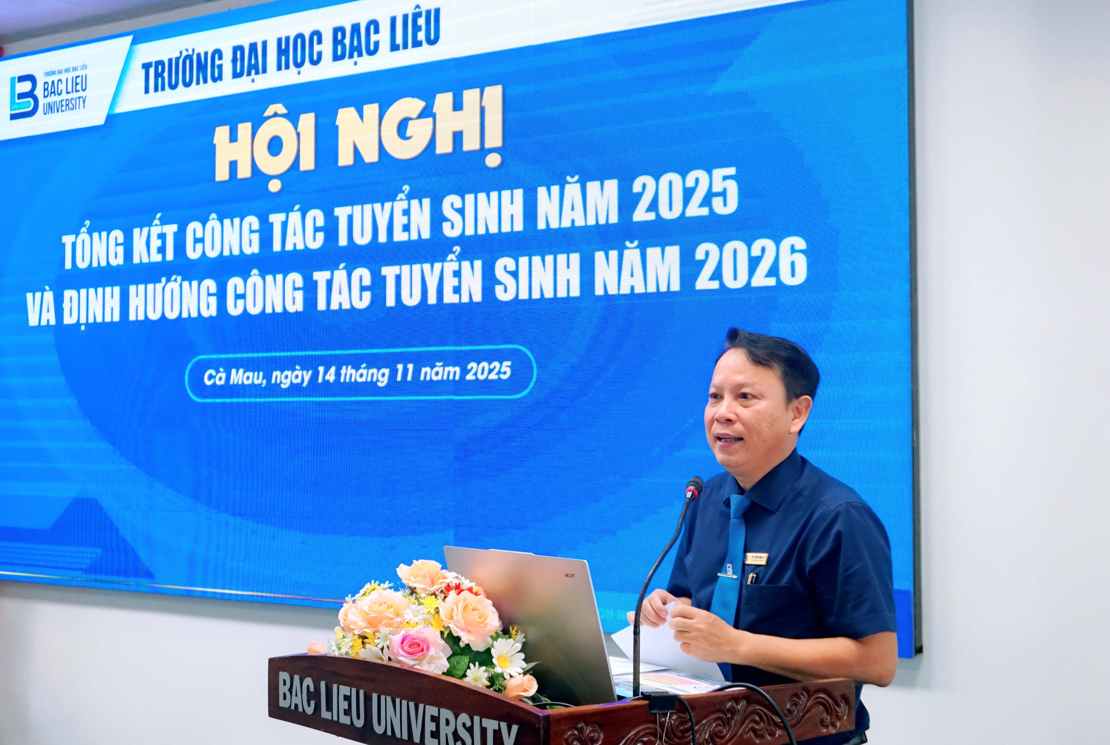 Ngày 14/11/2025, Trường Đại học Bạc Liêu long trọng tổ chức Hội nghị Tổng kết công tác tuyển sinh năm 2025 và triển khai định hướng tuyển sinh năm 2026. Hội nghị có sự tham dự của Ban Giám hiệu nhà trường, lãnh đạo các khoa – phòng – trung tâm, đại diện các trường THPT trong và ngoài tỉnh.