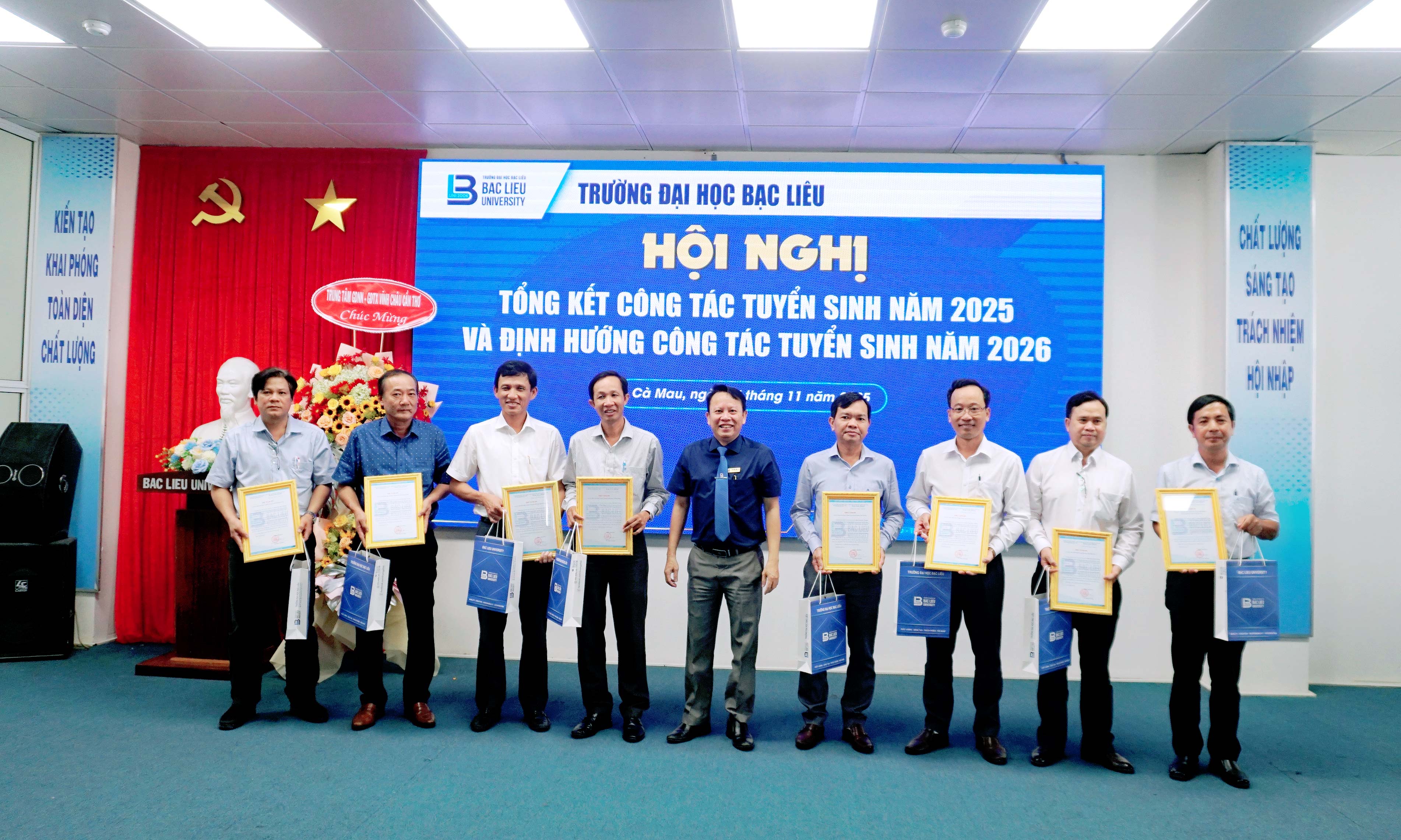Kết thúc hội nghị, Ban Giám hiệu trao tặng giấy khen ghi nhận tinh thần trách nhiệm và sự nỗ lực của các đơn vị, cá nhân trong công tác tuyển sinh năm 2025, đồng thời đề nghị các khoa – phòng tiếp tục phối hợp đồng bộ, chủ động sáng tạo trong triển khai nhiệm vụ tuyển sinh 2026. Hội nghị cũng thể hiện quyết tâm của Trường Đại học Bạc Liêu trong việc nâng cao chất lượng đào tạo, khẳng định thương hiệu và đóng góp tích cực vào sự phát triển nguồn nhân lực của tỉnh và khu vực ./.
