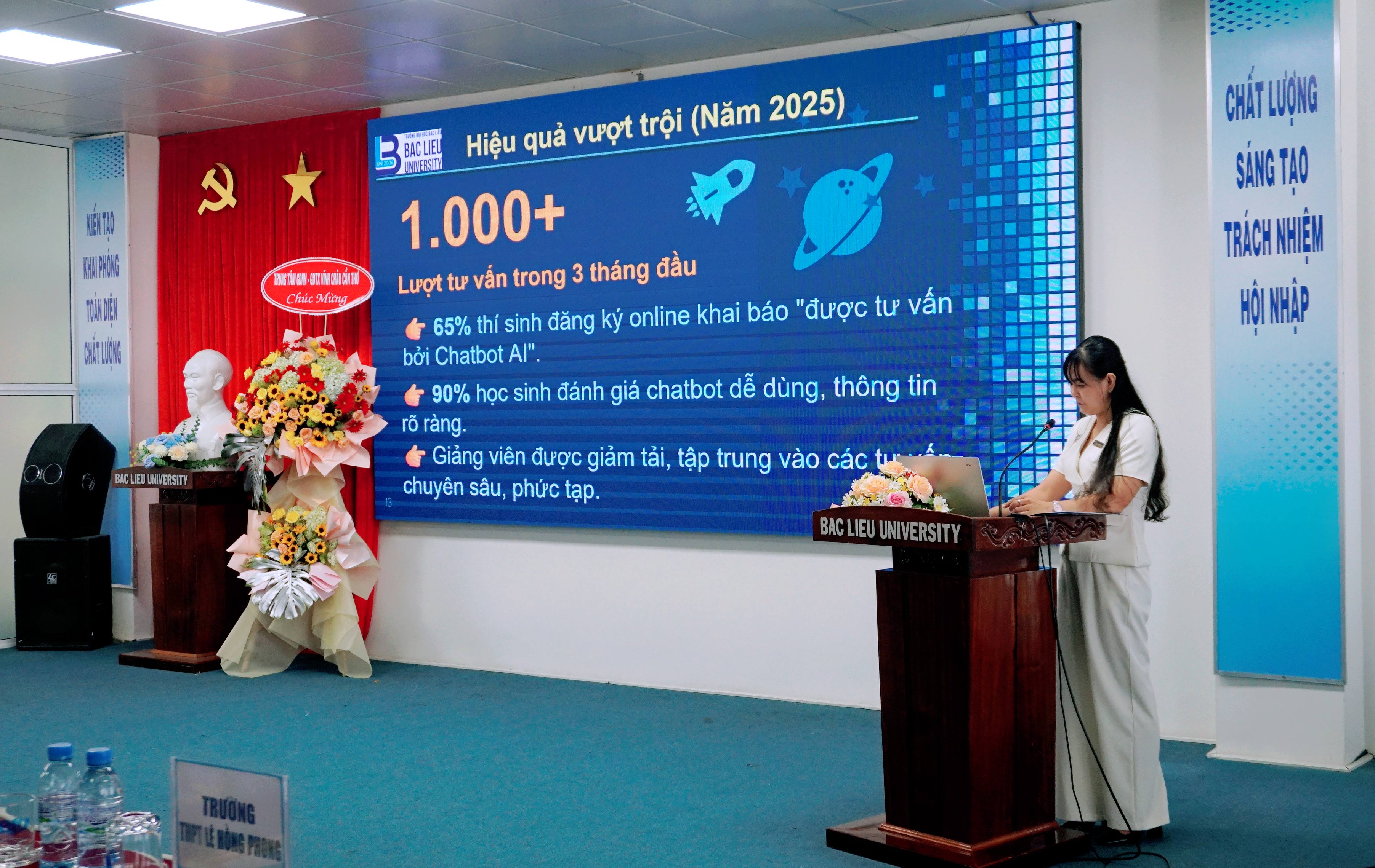 Để đi vào chuyên sâu cho Định hướng tuyển sinh năm 2026 Hội nghị thông qua các báo cáo chuyên đề như: (1) Vai trò, trách nhiệm của giảng viên trong hỗ trợ công tác tuyển sinh do TS Lê Thanh Tùng - Khoa Kinh tế và Luật trình bày; (2) Nâng cao hiệu quả tư vấn tuyển sinh bằng Chatbox AI- do Thạc sĩ Huỳnh Thị Mỹ Trâm - Khoa Kỹ thuật và Công nghệ trình bày.