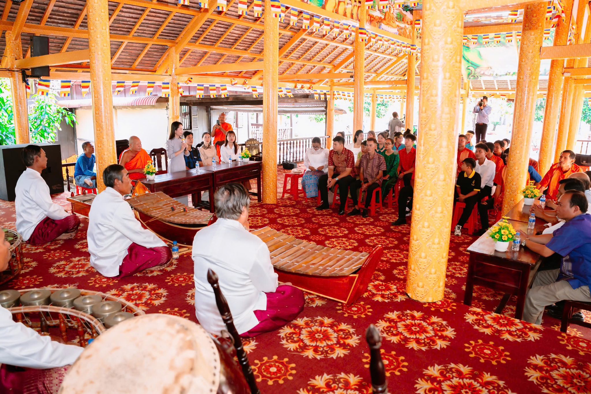 Qua buổi ngoại khóa, các học viên được tham quan, tìm hiểu giá trị công trình nghệ thuật - kiến trúc độc đáo chùa Xiêm Cán; chia nhóm thực hành thuyết minh về lịch sử hình thành ngôi chùa và các hạng mục chính trong khuôn viên như sala, chánh điện, nhà truyền thống. Đặc biệt, học viên được nghe các nghệ nhân chùa Xiêm Cán chia sẻ kinh nghiệm, kỹ thuật trình diễn nhạc Ngũ âm và giao lưu trình diễn các loại hình múa dân gian Khmer.