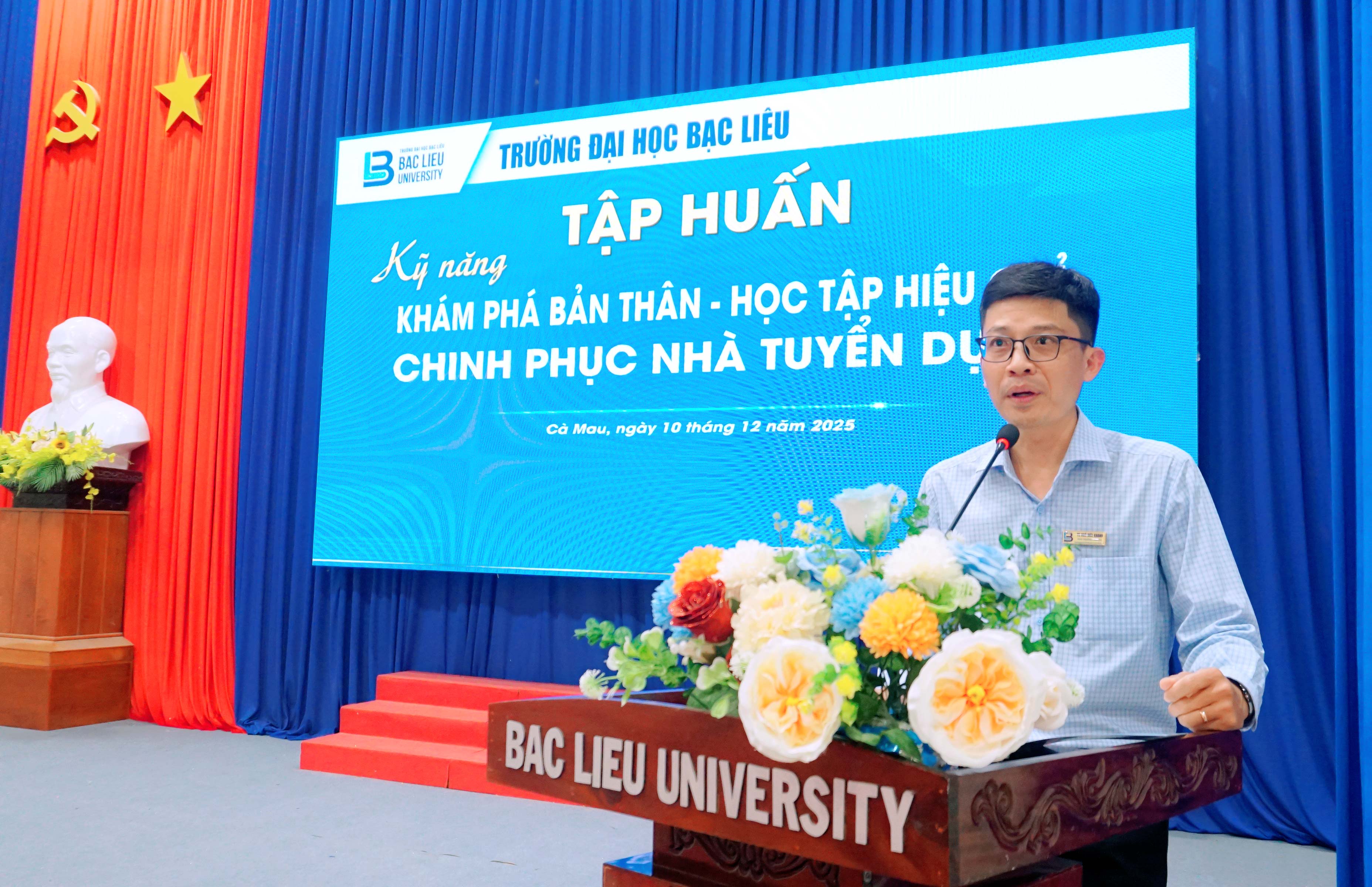 “Trường Đại học Bạc Liêu luôn coi trọng việc nâng cao năng lực toàn diện cho sinh viên, không chỉ qua kiến thức chuyên môn mà còn thông qua các kỹ năng mềm và năng lực thích ứng nghề nghiệp. Buổi tập huấn hôm nay là dịp để các em tự nhìn lại bản thân, tích lũy kỹ năng thực tế và chuẩn bị tốt nhất cho quá trình hội nhập vào thị trường lao động. Nhà trường tin rằng với sự chủ động, tinh thần học hỏi và ý chí phấn đấu, sinh viên Trường Đại học Bạc Liêu sẽ tự tin chinh phục những cơ hội nghề nghiệp trong tương lai.”
