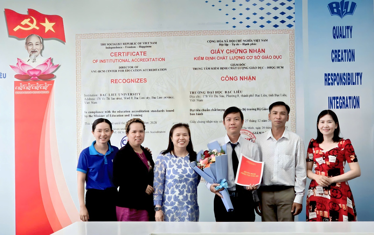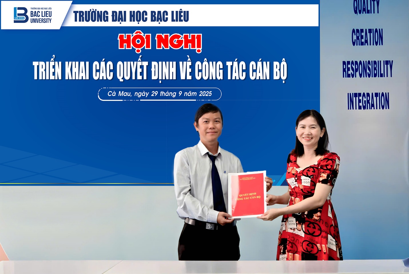 Buổi triển khai quyết định diễn ra trong không khí trang trọng, thể hiện sự quan tâm của Đảng ủy, Ban Giám hiệu Nhà trường đối với công tác tổ chức – cán bộ, đồng thời khẳng định vai trò quan trọng của đội ngũ viên chức trong sự nghiệp giáo dục – đào tạo và phát triển bền vững của Trường Đại học Bạc Liêu.