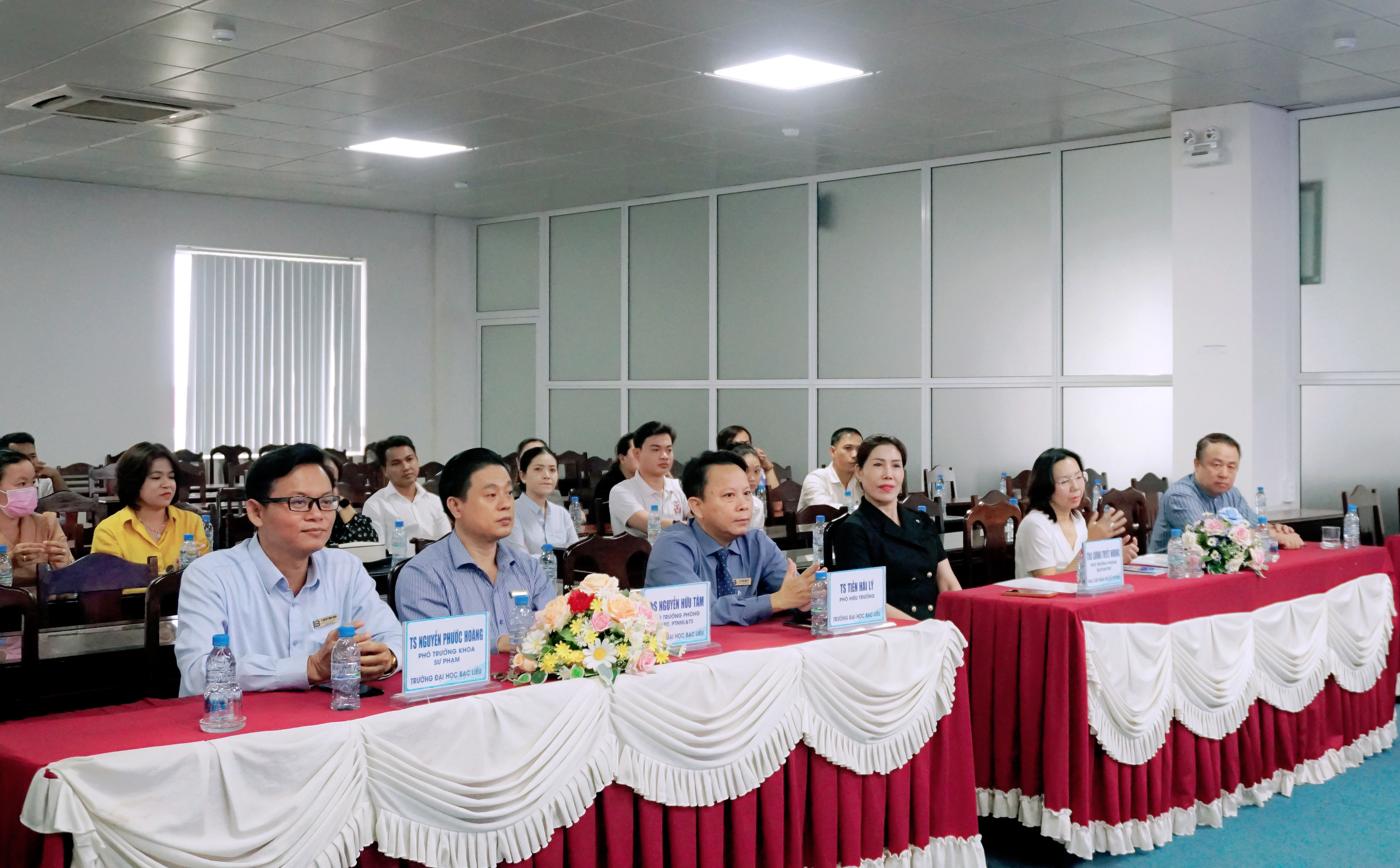 Tham dự buổi lễ có đại diện Ban Giám hiệu – TS Tiền Hải Lý – Phó Hiệu trưởng Trường Đại học Bạc Liêu; Cô Lương Tuyết Nhung - Phó trưởng phòng Đào tạo, QLKH&HTQT - Nhạc viện TP. Hồ Chí Minh; lãnh đạo Phòng LKĐT, PTNNL&TS, Khoa Sư phạm và Phòng KH&TC, cùng đội ngũ giảng viên, học viên của khóa học.