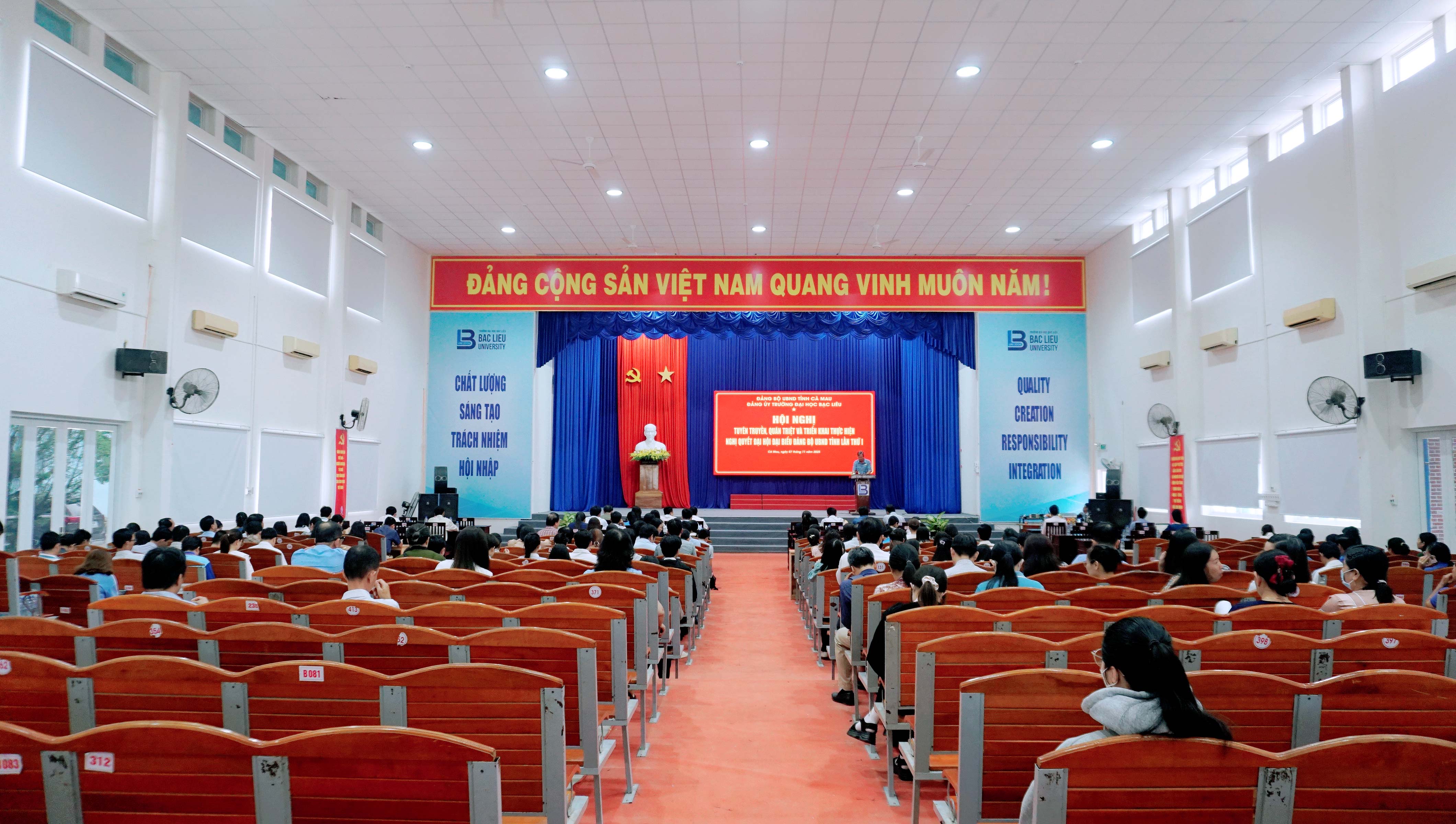 Chiều ngày 07 tháng 11 năm 2025, tại Hội trường số 2, Cơ sở 1 - Trường Đại học Bạc Liêu, Đảng ủy Trường Đại học Bạc Liêu tổ chức Hội nghị tuyên truyền, quán triệt và triển khai thực hiện Nghị quyết Đại hội đại biểu Đảng bộ UBND tỉnh lần thứ I, nhiệm kỳ 2025–2030.