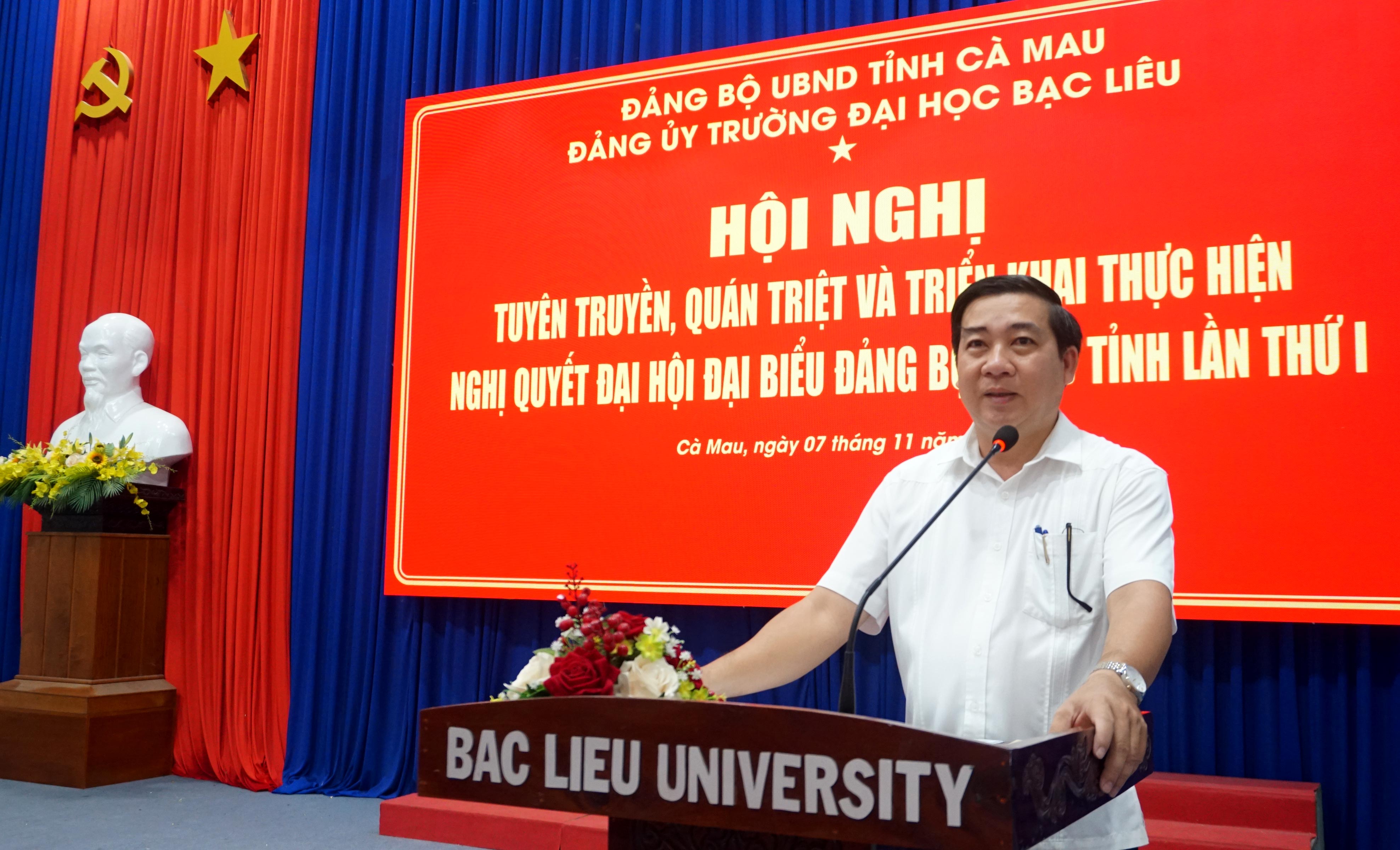 Trường Đại học Bạc Liêu tổ chức Hội nghị tuyên truyền, quán triệt và triển khai thực hiện Nghị quyết đại hội đại biểu Đảng bộ UBND tỉnh lần thứ I