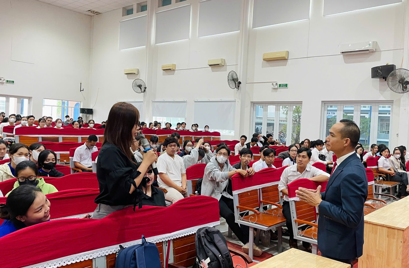 Sinh viên tham dự tại buổi tập huấn đặt câu hỏi, trao đổi với diễn giả